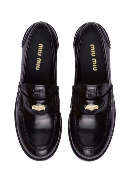 SAPATO MIU MU BRUSHED LEATHER PENNY LOAFERS 36