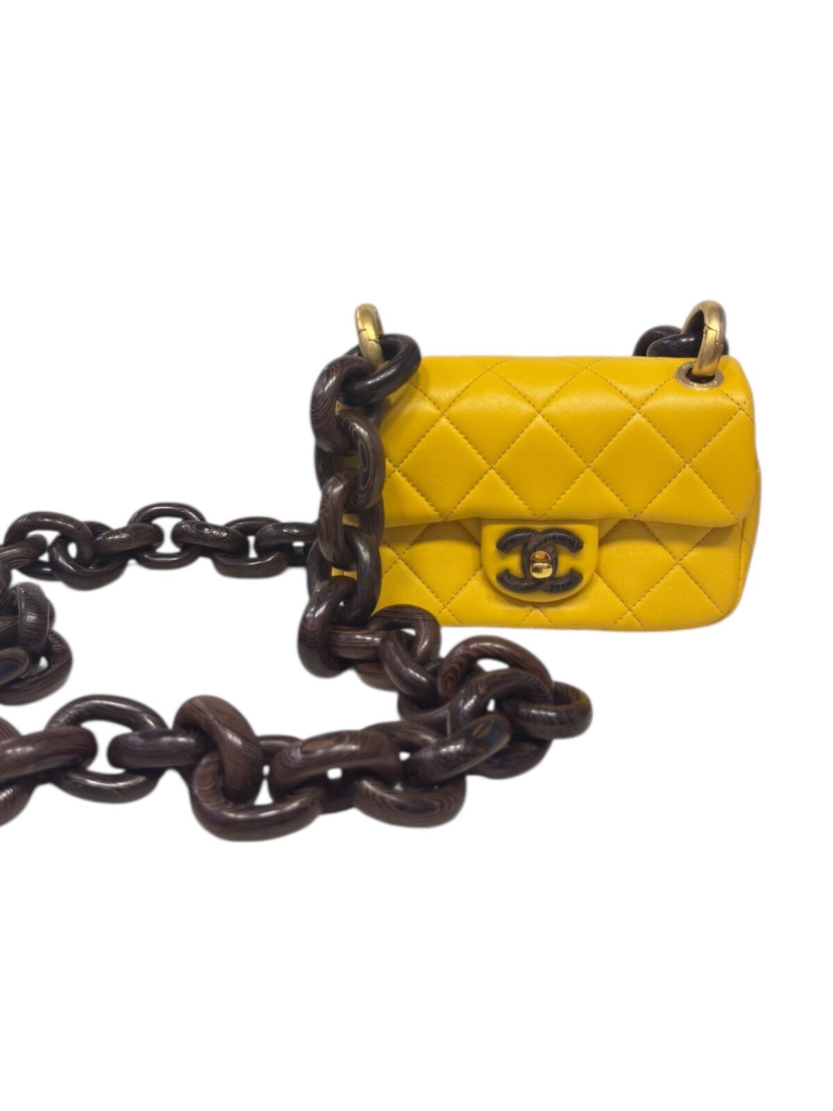 Bolsa confeccionada em couro, com design elegante e acabamento refinado. Possui alça em madeira e fecho CC também em madeira, ferragens ouro velho fosco e bolso externo na parte de trás da bolsa. Compartimento interno único, todo em couro com um bolsinho interno.