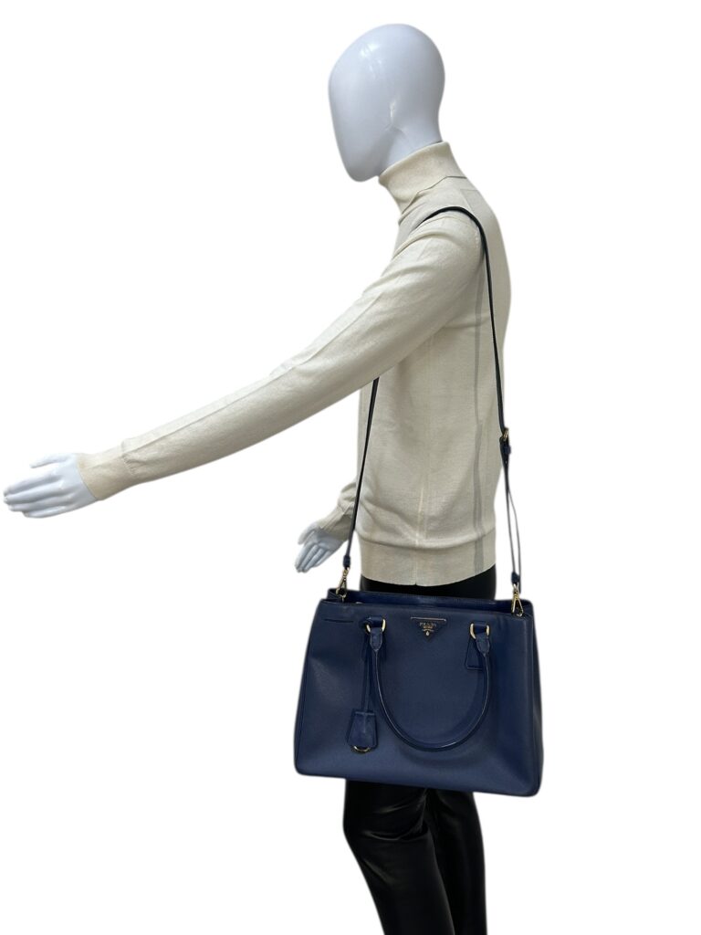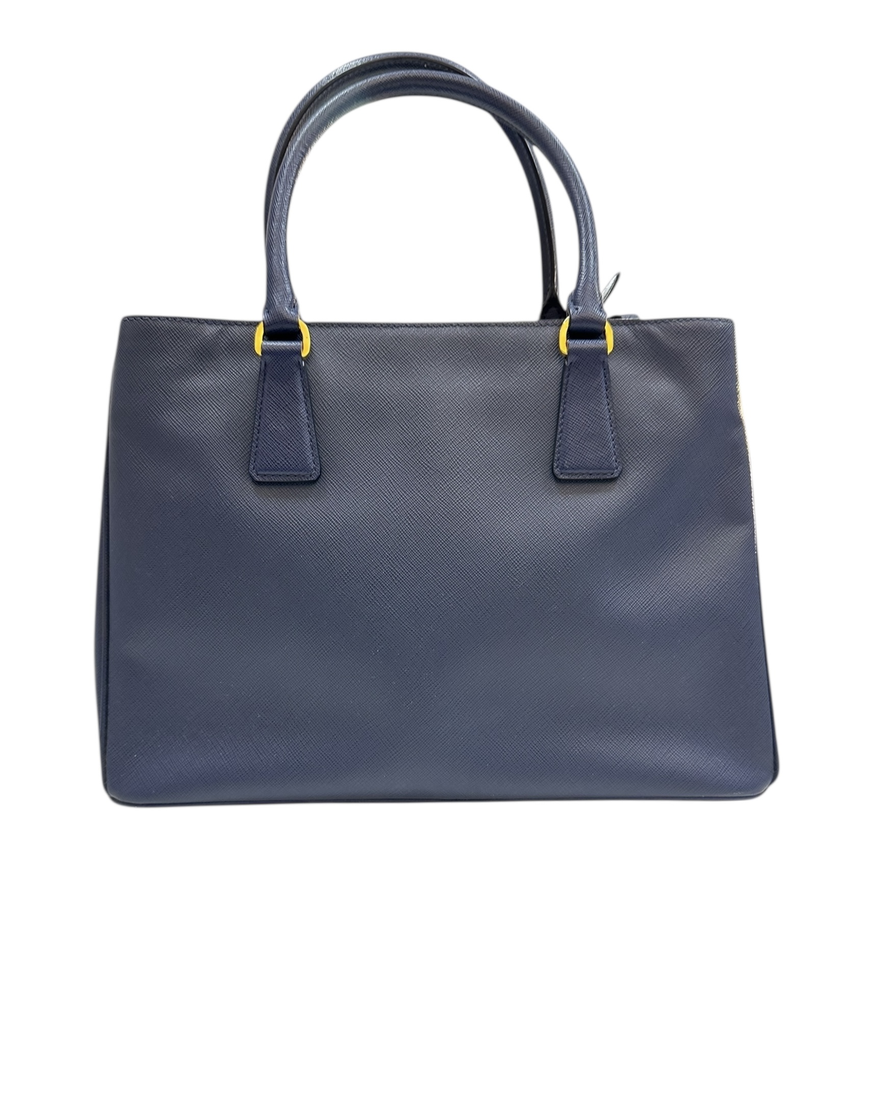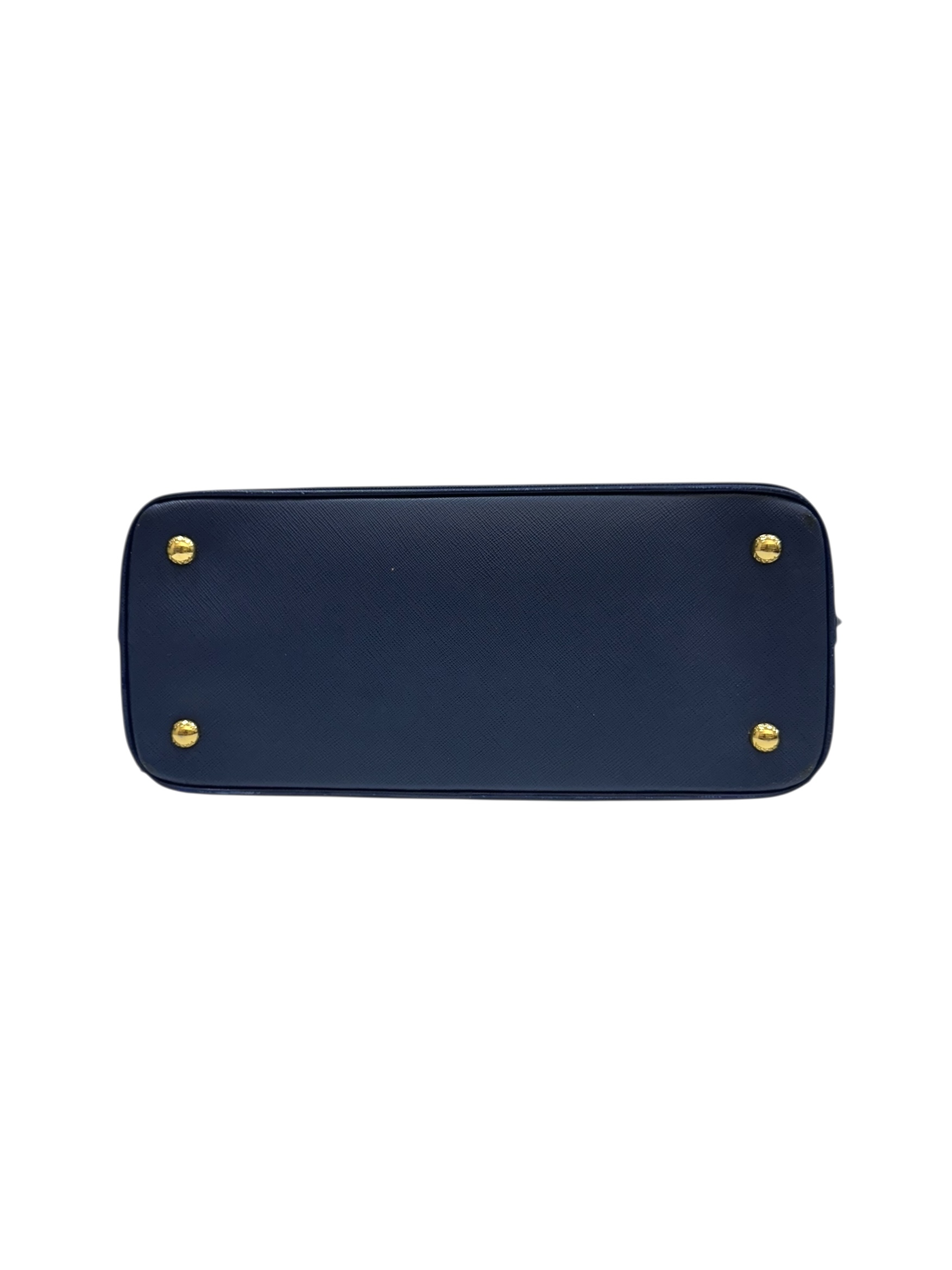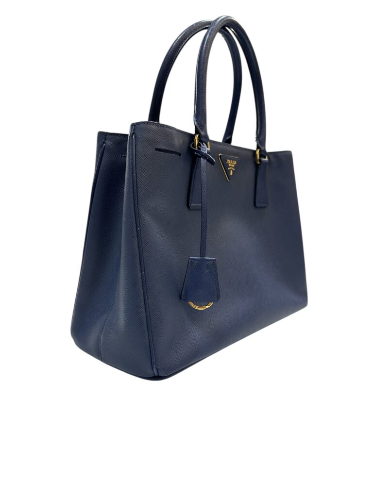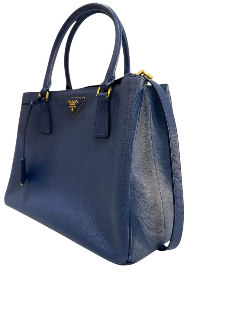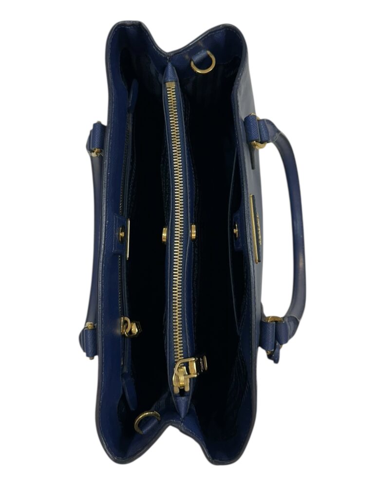 Bolsa em couro Saffiano, alça dupla de mão e alça de ombro ajustável e removível. Parte interna em tecido com 3 divisões sendo a divisão central com fechamento por zípper.