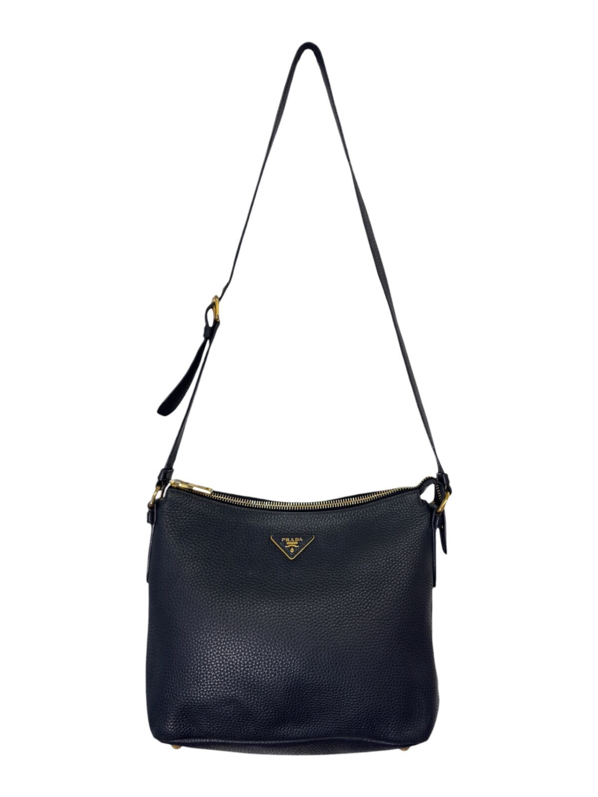 Bolsa com alça longa, compartimento único com fechamento em cursor e 2 bolsos internos. Ferragem dourada e couro texturizado.