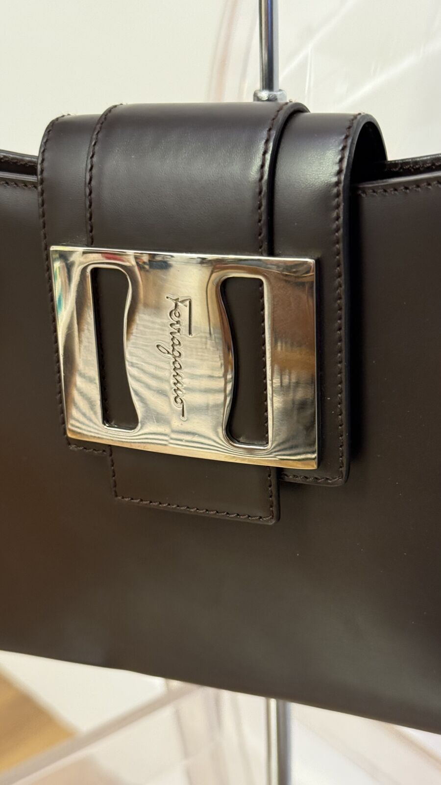 Bolsa em ótimo estado apresenta mínimas marcas de uso no couro.