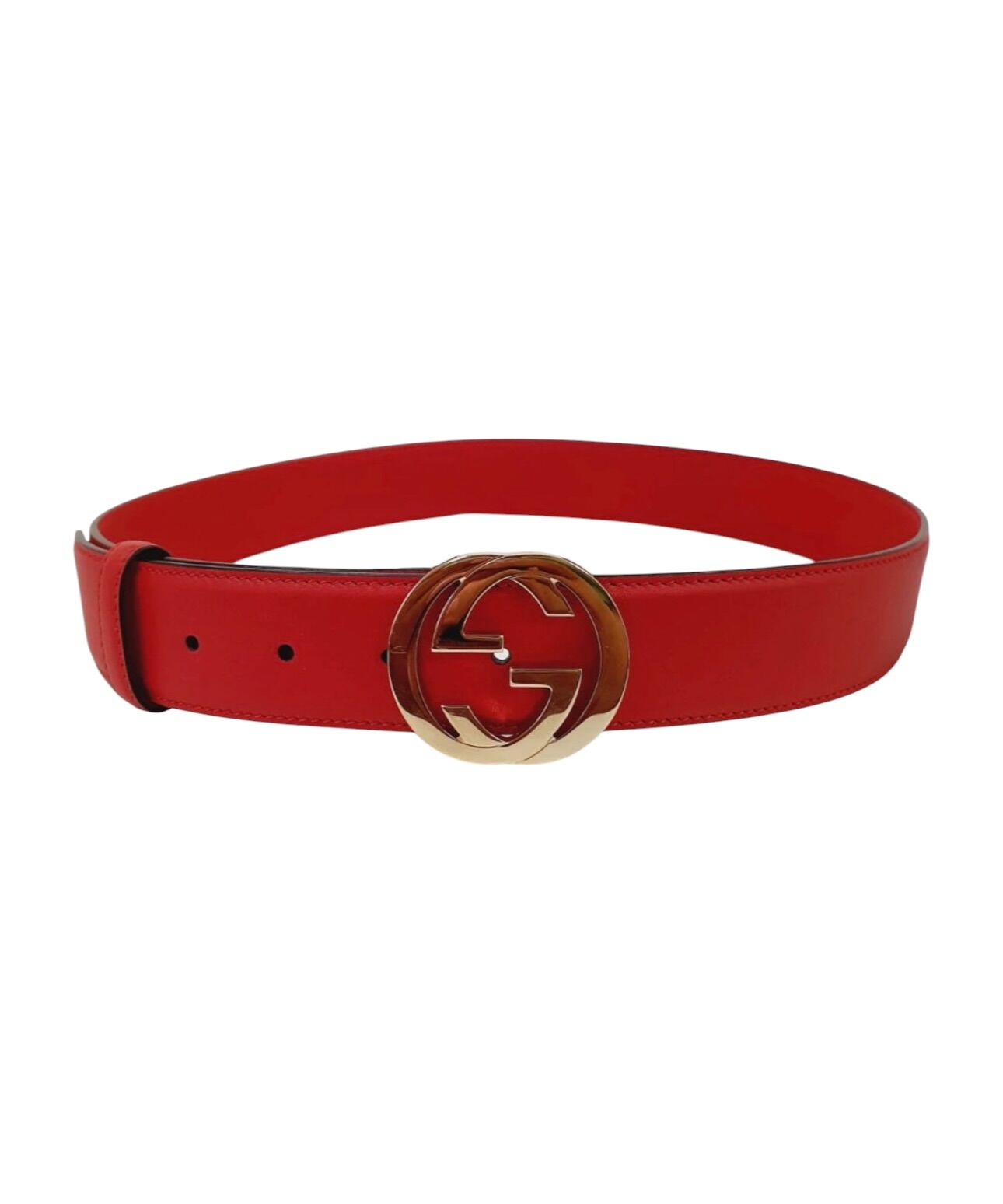 Cinto com 4 cm de largura em couro fosco vermelho. Fivela GG dourada.