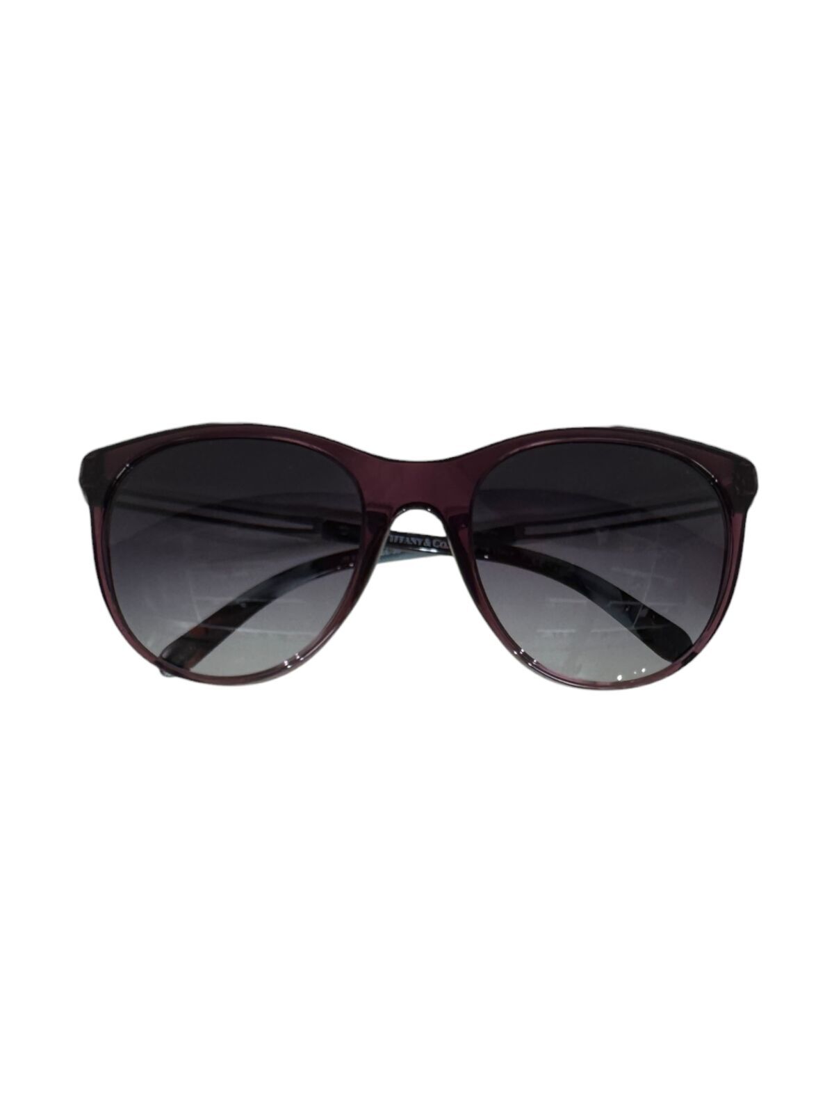 Óculos em acetato vinho com lente degradê cinza, haste possui detalhe em metal na cor prata com coração e acabamento em acetato em tons de vinho, preto e cinza.